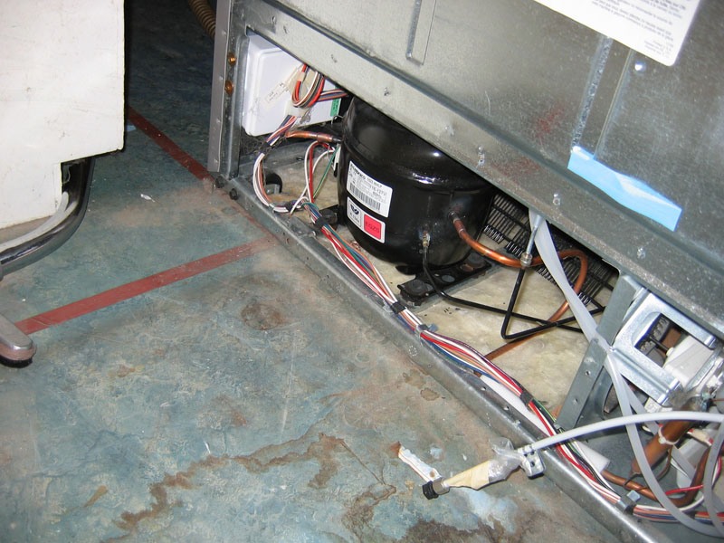 Not so much access to the coils from there, either. The compressor is in the way, and the only coils you can get at from the back are pretty clean anyway.