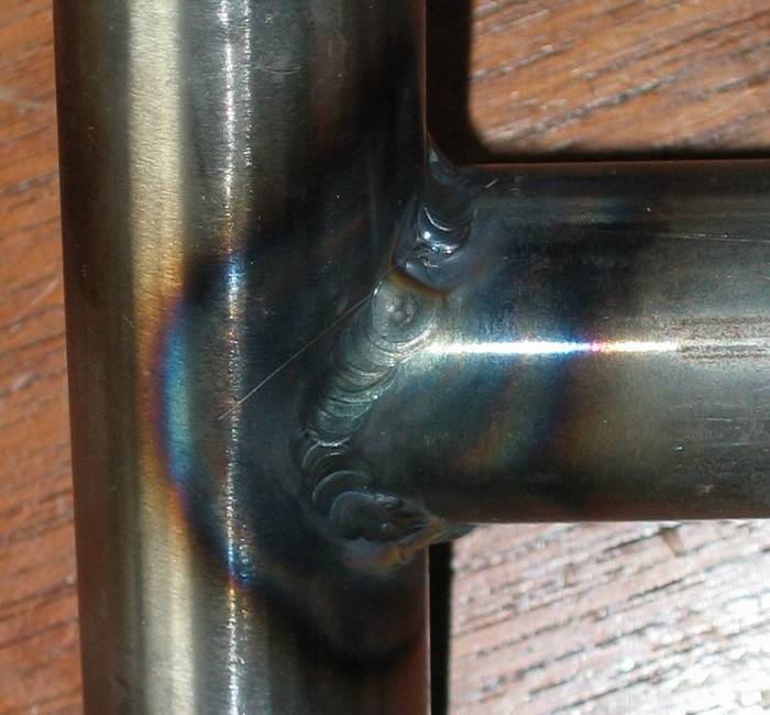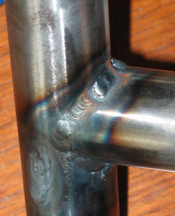 Last night was my second class; before it I spend some time practicing at my friends' house. Here's my second attempt at a notched round tube "T" weld. I'm sure it has a better, more technical name. Correct me in the comments: